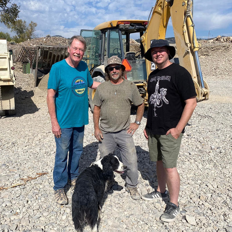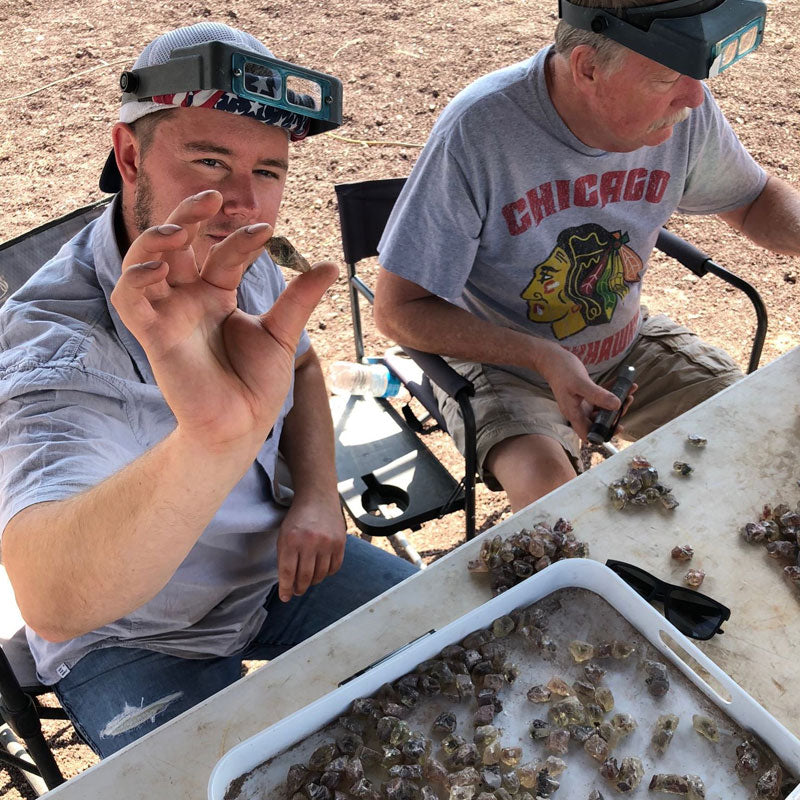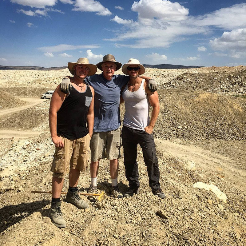 Not long after that, I started traveling to different mines with my Brother, Jeff, and Dad, Steve, to see how and where many of these beautiful minerals were found. A few of the places that we've visited to do a little digging have been: Arkansas for Quartz & Diamond, Montana for mainly Sapphire (and some Quartz), Oregon for Sunstone, Nevada for Opal, Alberta, Canada for Ammolite, and in Africa we went to the Tanzanite mines in Tanzania. Even though we generally don't personally find anything too extraordinary (with some exceptions), it does give me the opportunity to learn a little and buy direct from the miners. Not only that, but we also travel regularly to the big gem & mineral shows in Arizona & Colorado in the USA and Thailand & Hongkong in Asia. You can see some of the pictures from a few of our trips below!