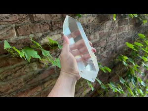 Big beautiful polished clear quartz. This is a natural piece of quartz from Brazil that has been polished to get this shape. The two points are not natural, but it does have to natural crystal faces on the sides of the piece. The facets are surprisingly flat for such large surfaces and the meets are fairly sharp. A very clear piece of quartz that has a beautiful look to it. We consider this to be a XLC Small Cabinet Sized Mineral Specimen.
