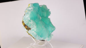 This beautiful vibrant blue aragonite specimen. The color is truly amazing and has a good overall look to it. It's a great cabinet sized addition to any mineral collection. We consider this piece to be a Extra Large Cabinet Specimen (XLC).
