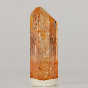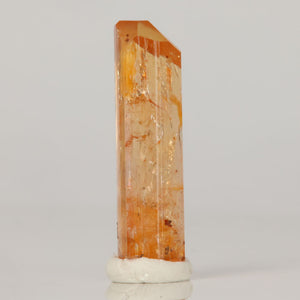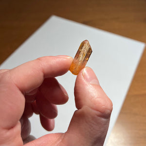 This chrome topaz crystal has a beautiful & gemmy yellowish Orange color. While beautiful in natural lighting, these chrome topaz crystals have the unique characteristic of fluorescence and will fluoresce a beautiful pinkish/red color when viewed in a dark room under a long wave UV flashlight. The last photo is an example of a group of Zambian chrome topaz crystals (this particular piece is shown somewhere in this group shot) displayed under natural light and under a long wave UV lamp to show the fluorescence seen in this material. *Keep in mind, some crystals will have a stronger fluorescence than others.We consider this piece to be a Thumbnail sized Specimen (TN).