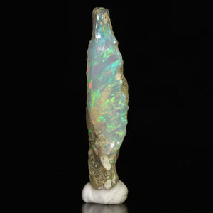 Welo Ethiopian hydrophane opal mineral specimen with an amazing play of color. This opal material should NOT be submerged in water or have any oils applied to it ever. Also, due to the hydrophane nature of this opal, the weight can vary slightly with humidity. We consider this to be a Miniature (MIN) sized specimen.