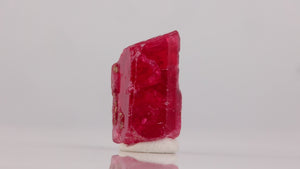 This beautiful pinkish red rhodonite specimen is very gemmy within and has a beautiful color. A very nice piece with good aesthetics for a neat transparent sample. We consider this piece to be a Thumbnail sized Specimen (TN).