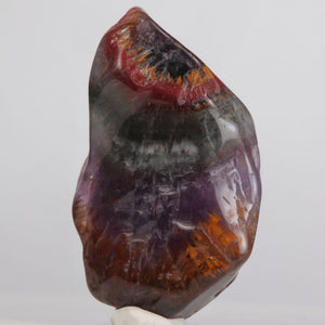 This unique specimen has amazing color zoning going on throughout. This piece was most likely cleaved from a larger geode to show the beautiful zoning within. Not only that, but it was also tumbled to give the originally dull surface, a more transparent and polished look to show these natural color zones. This was sold to me as "Auralite 23", although some have said people call it the "Super 7 Melody Stone", but honestly, it's just a pretty piece of quartz with very defined zoning throughout it. Whether you're into the metaphysical aspect of things or just looking for a pretty mineral, this material is a beautiful! It would make a great smooth pocket stone, cool cabbing material, or a unique display sample. We consider this piece to be a Miniature (MIN) sized mineral specimen.