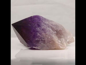 This piece is an amazing specimen with great color, a beautiful termination, and a fairly gemmy crystal point. It mainly shows the purple, but if back lit, you will see a beautiful orange coloration within, which is a classic trait in many of these quartz crystals from this locality in Bolivia. We consider this piece to be a Large Cabinet Specimen (LGC).
