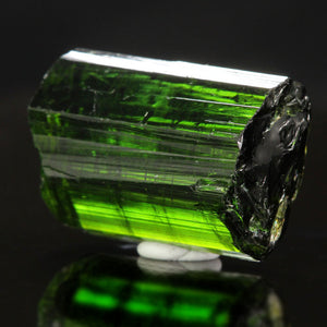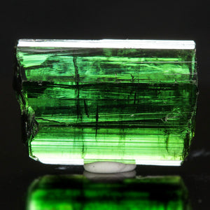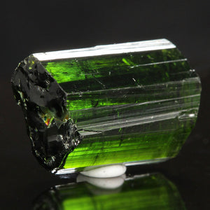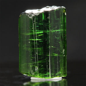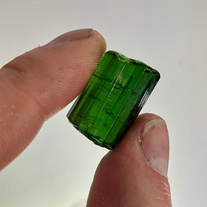 This is a beautiful green-colored tourmaline crystal from Brazil. This piece would make a great specimen or could work as a cutting rough for a carving or cabochon. Internally, it's not totally clean, but it is a very gemmy crystal! We consider this to be a thumbnail (TN) sized piece.