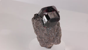 Lovely almandine garnet crystal in schist creates this neat little display specimen. We consider this piece to be a Miniature Specimen (MIN). This beautiful mineral specimen is available today!